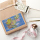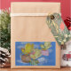 Family of yellow birds are on the move with luggage in talons to their new home. They fly against a bright blue sky with wisps of clouds. Original watercolor art by Laura J. Holman © 2011.