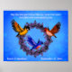 Colourful birds landing on a delicate purple floral wreath personalised wedding gift poster. May the love you feel on this day, grow ever more beautiful with each passing year. Replace the names and date in the template.