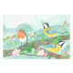 Enjoy a spring vigil! Tit Birds and Red Robins sing on a flowering branch. The time of the singing of birds has come. Nature and bird lover gift.