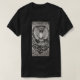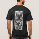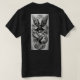 shirt graphic of a Mystical and magical dove like creature in black & white with hints of red no background