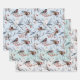 These botanical wrapping paper sheets have hand drawn, watercolor art illustrations of beautiful birds, evergreen branches, pine cones, red berries, and the moon, on a background of pastel blue, teal green, or silvery grey. Perfect for Christmas, winter birthdays, or any seasonal occasion, family and friends will love this winter foliage pattern.