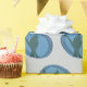 This wrapping paper displays a bird silhouette in grey against a blue circle. The lighter grey background colour can easily be customised.