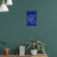 This artwork features precise white linework on a deep blue background, highlighting Birmingham’s urban structure, canals, and city layout with clarity and balance.