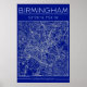 Birmingham Blueprint City Map Poste Minimal Wall Poster