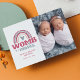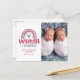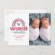 Twins Baby Photo Template Modern Happy Womb Mates Announcement Postcard features one of your favourite photos of your newborn twins boy or girl with the text "Womb Mates" in hand lettered pink and blue calligraphy script, accented with a rainbow and love heart. Add additional information such as your newborn babies names and birth information. On the reverse add your personalised custom message announcing the arrival of your newborn baby or a message of thanks from the parents and family. PHOTO TIP: centre your photo before uploading to Zazzle. Designed by ©Evco Studio www.zazzle.com/store/evcostudio