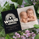 Twins Baby Photo Template Modern Happy Womb Mates Foil Stamped Baby Announcement Postcard features one of your favourite photos of your newborn twins boy or girl with the text "Womb Mates" in hand lettered rose gold foil calligraphy script, accented with a rainbow and love heart. Add additional information such as your newborn babies names and birth information. On the reverse add your personalised custom message announcing the arrival of your newborn baby or a message of thanks from the parents and family. PHOTO TIP: centre your photo before uploading to Zazzle. Designed by ©Evco Studio www.zazzle.com/store/evcostudio