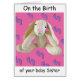 Birth baby Sister card bunny rabbit.