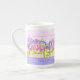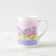 A bone china mug with hand-illustrated flower-of-the-month frieze and birthstone for April.