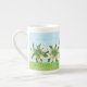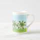 A bone china mug with hand-illustrated flower-of-the-month frieze and birthstone for December.