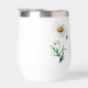 Birth month flower April Daisy wine tumbler featuring an illustration of a daisy flower. Below the flower, the name is written in an elegant script font. Beneath the name, it states "April - Daisy," indicating that birth month is April and the birth flower is the daisy. It is a personalised wine tumbler, created as a thoughtful gift for someone born in April.