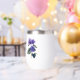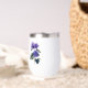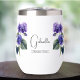 Birth month flower February Violet personalised wine tumbler featuring an illustrationof violet flowers. The custom name is written in a stylish script font above the flowers. Below the name, it states "February - Violet," indicating that birth month is February and birth flower is violet. It's a charming wine tumbler, customised as a special gift for someone born in February.