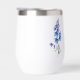 Birth month flower July Larkspur wine tumbler with an illustration of a larkspur flower. Below the flower, the name is written in a stylish script font. Beneath the name, it states "July - Larkspur," indicating that the owner's birth month is July and her birth flower is the larkspur. It is a personalised wine tumbler, created as a thoughtful gift for someone born in July.