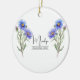 Birth month flower September Aster ornament featuring an illustration of an aster flower. Below the flower, the name is written in an elegant script font. Beneath the name, it states "September - Aster," indicating that the owner's birth month is August and her birth flower is the gladiolus. It is a personalised ornament, customised as a thoughtful gift for someone born in September.