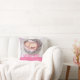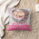 Modern simple newborn baby pillow cushion a perfect newborn baby girl keepsake gift. Looks great in a baby's nursery for nursing. Customise with your own special photo, name and birth date and details. Would make a lovely unique commemorative gift for a newborn baby. Uniquely designed by Sarah Trett.