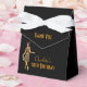 Elegant faux gold and glam for a 1920's style 50th (or any age) birthday party! An art deco style birthday party thank you favour box in faux gold and black. Decorated with a 1920's style flapper girl. Template for your name and age 50. With the text: Thank You.