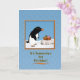 A cute little penguin looks at a birthday cake with a burning candle on this humourous third birthday card. The penguin and cake are the work of Karen’s Scraps and Graphics. The customer can change the inside of the card to suit their needs.