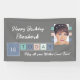 Birthday any age add photo name grey pink banner