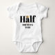 A crown half birthday outfit for your baby. Celebrate your baby’s first six months with this design that includes a gold crown and says “Half” and “Birthday Baby” in bold black letters for everyone to see. Add this outfit to your cart, get it home, and happy half birthday to your wonderful baby!