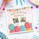 Fun, festive birthday paper napkins featuring pink, gold and green balloons, streamers and confetti, your 2 photos and 2 lines of custom text. Colourful, spirited and classic - perfect birthday napkins for kids and adults.