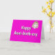 White balloon with hair, eyeballs, and smile on a neon pink background for general birthday.