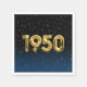 Gold mylar birthday balloons for 1950 birthday on gradient black and blue background with night stars.