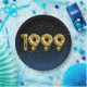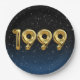 Gold foil balloons for 1999 birth year on gradient black and blue background with night stars for birthday party.