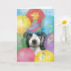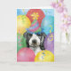 Happy birthday greetings with this design featuring a cute, party hat-wearing English Cocker Spaniel puppy surrounded by colourful balloons, confetti and streamers.