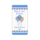 Whimsical birthday mini wine labels, with pretty graphics, on the top and bottom, of colourful small balloons. Three larger balloons decorate the middle and fun blue text, on the top and bottom is ready to personalise for your special event.