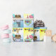 This cute Birthday Bash Boy Birthday Wrapping Paper features a blue and yellow gradient background, a little Black American boy wearing blue t-shirt, shorts, sneakers, a party hat, holding colourful balloons. Colourful stylised text is Birthday Bash. There is a green polka dot frame with a blue background and a party hat with Birthday text. Perfect for wrapping Birthday Day Gifts. Choose your media and size of wrapping paper.