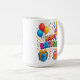 Let the confetti fly! This fun and festive birthday mug bursts with balloons, cake, gifts, and streamers—all centred around bold, rainbow-coloured “Happy Birthday” text. Designed by Callum AI to bring joy, colour, and cake-fuelled smiles to any birthday celebration.