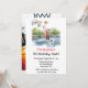 I chose the larger postcard sized one, as the font would be large for older eyes, and customised it keeping the Rail Ticket theme on the front, with venue address/date/time of party, and on the back I added another steam train and various 80 speed limit/rail signages. The trick is not to overdo it or it looks too busy. I also added at one end of the front side, a word of thanks from the birthday boy.