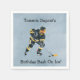 An energetic and colourful illustration of a hockey player mid-action, perfectly capturing the excitement of a birthday celebration on the rink. Decked out in a bold black and yellow uniform with a splash of red on the skates, the player focuses intensely on the puck, ready to make the next big move. A dynamic tribute to sports, teamwork, and celebration.