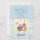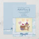 A super cute juvenile invitation featuring a teddy bear with a birthday hat, fireworks and a cherry-topped cupcake.