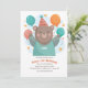 A juvenile birthday party invitation featuring a cute bear in a birthday hat and balloons. (<a href='https://www.freepik.com/free-vector/birthday-bear_3774210.htm'>Designed by Freepik</a>). <br/><br/>The card is easy to customise with your wording, font, font colour and choice of six paper types.<br/><br/>Not exactly what you're looking for? All our products can be custom designed to meet your needs at no extra charge.<br/><br/>Simply contact us at askcottonlamb@gmail.com<br/><br/>Coordinating products available: