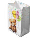 Cute watercolor bear with a balloon bouquet and party confetti for any age birthday.