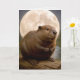 A beaver sits on a log by the river, illuminated by a full moon glowing brightly behind it, with lush foliage surrounding the scene.