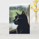 Birthday Black Cat In Rainy Window Card