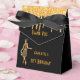 Elegant faux gold and glam for a 21st birthday (or any age) birthday party! An art deco, Gatsby style birthday party thank you favor box in classic black. Decorated with a 1920's style flapper girl and faux gold glitter drips, paint dripping look. Personalize and add your name and age 21. With the text: Thank You. Golden colored letters.