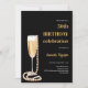 A modern, stylish and glamourous invitation for a Pearls and Prosecco birthday party (any age) A black background with a glass, flute with golden bubbles and pearls. The name is written with a modern hand lettered style script. Personalise and add your party details.