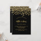 A modern, elegant and invitation. A black background decorated with faux gold confetti. Personalise and add a name and details.