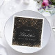 For a glamourous 50th (or any age) birthday party. A stylish black background. Decorated with faux gold glitter dust and alight strings. Personalise and add a name and age 50. The name is written with a modern hand lettered style script.