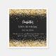 For a glamourous 50th (or any age) birthday party. A stylish black background. Decorated with faux gold confetti, sparkles. Personalise and add a name, age, date and a text. The name is written with a modern hand lettered style script.
