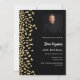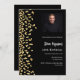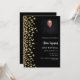 A modern, elegant and invitation. A black background decorated with faux gold confetti. Personalise and add photo, a name and party details. White text.