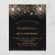 A modern, stylish and glamourous invitation for a 40th (or any age) birthday party. A black background decorated with faux glitter and sparkle. The name is written with a modern golden coloured hand lettered style script. Personalise and add your party details.