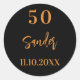 For a 50th (or any age) birthday party. A black background. Add your name, age, date. The name is written with a modern hand lettered style script. Golden text.