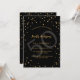 A glamourous birthday party invitation for both him and her. A black background decorated with faux gold stars. Personalise and add a name and party details. Golden coloured text. Age number as watermark.