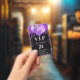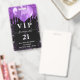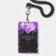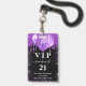 A modern, stylish and glamourous badge for a 21st (or any age) birthday party. A black background with purple faux glitter drips, paint dripping look and balloons. With the text: VIP. Personalise and add name, age, address/date.