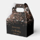 Elegant, classic, glamourous and girly for a 21st (or any age) birthday party favours. A chic black background. On the front and the back: Personalise and add a name, age 21 and a date. The name is written with a modern hand lettered style script. Decorated with dark rose gold faux sparkles. Golden coloured text.