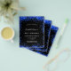 A girly and feminine 21st (or any age) birthday party invitation. On front: A chic black background. Decorated with royal blue faux glitter dust. Personalise and add a name and party details. The name is written with a hand lettered style script.