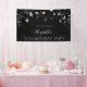A banner for a girly and glamourous 50th (or any age) birthday party. A chic black background with faux silver stars dripping. Personalise and add a date, name and age. The name is written with a modern hand lettered style script. Perfect both as a welcome banner or as party wall decor.